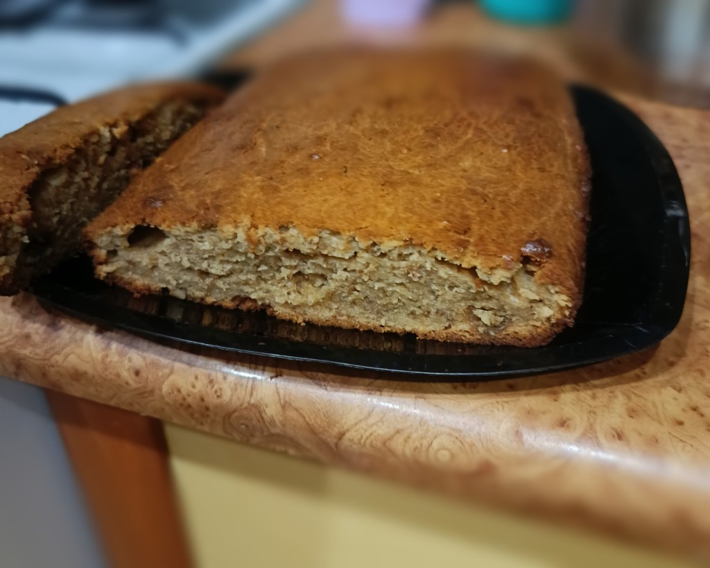 Кекс моей семье понравился, немного влажный, очень вкусный. Сахара добавила 70 г, оказалось достаточно.