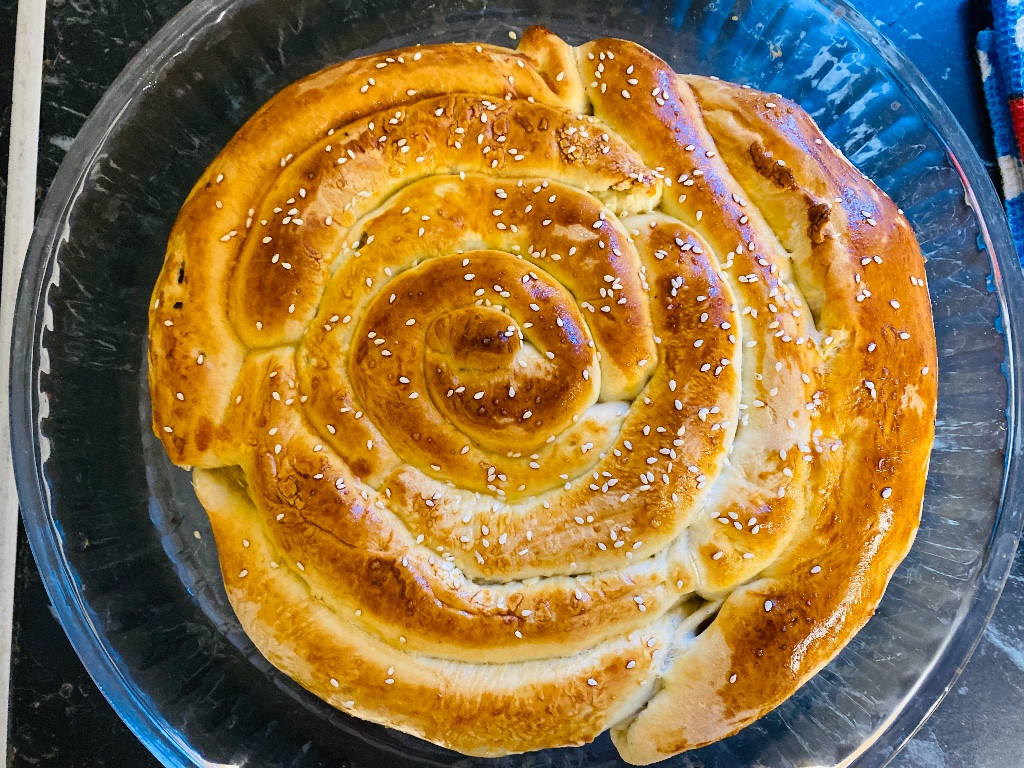 Вертута вкусная и сытная, больше ничего не хочется после кусочка. Жаль, что внутри осталась сыроватой (тесто) — нужно было подержать ещё в духовке, наверное, но я побоялась, что подгорит. Но всё равно ушла на «ура!», спасибо большое за интересный рецепт.