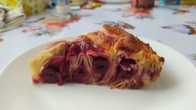 Попробовала испечь этот пирог. Очень вкусно! Чем то напомнило вареники с вишней с ванильным соусом. Только готовить значительно проще.