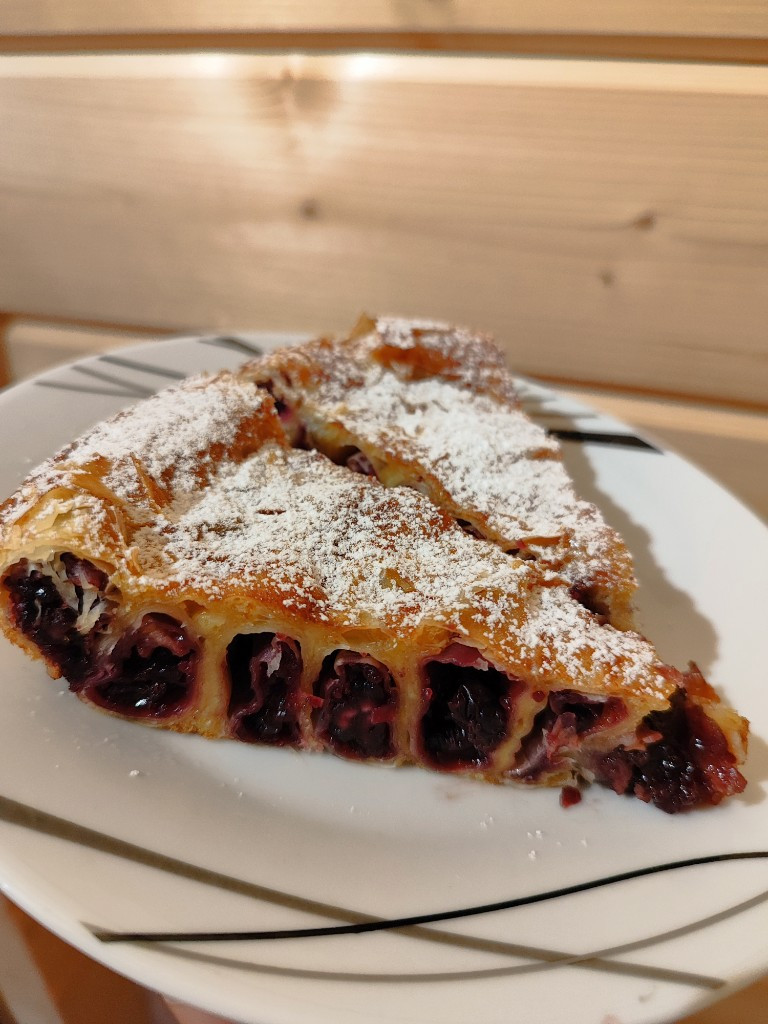 Правда у меня была начинка вишня с сахаром и крахмалом, на сковороде, готовила в сложенное тесто, но решила попробовать с тестом «фило»