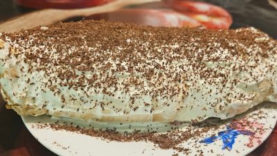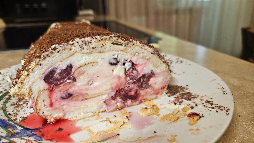 Всё получилось великолепно! Делала с малиной! Украсила тёртым шоколадом. Новогодний десерт всем угодил! Повторю и не раз! СПАСИБО! Очень переживала, что размокнет меренга, но даже сегодня рулет не потерял свою форму.