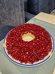Готовлю этот салат к Рождеству. Все по рецепту. Надеюсь, всем понравится. К нам придет свекр, не хотелось бы ударить в грязь лицом))). Немного волнуюсь по поводу косточек граната.