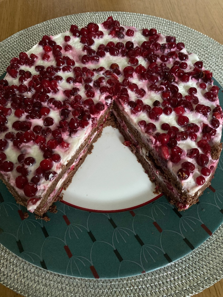 Добрый день! Торт получился красивый, высокий, но очень кислый, хотя все делала строго по рецепту. Видимо, брусника не наша ягода.