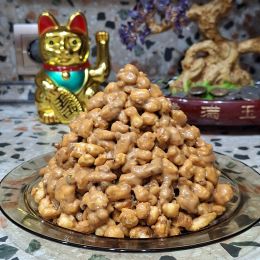 Очень вкусный торт, никак не на 6 порций. Получился один средний и один маленький тортик. Я добавила в крем обжаренных рубленных грецких орехов и 40 г меда, потому что в банке сгущенки оказалось 340 г. Крем был жидкий, стекал, и я оставила кусочки теста в кастрюле с кремом на ночь, а утром всё хорошо собралось в муравейник. Торт в меру мягкий, некоторые кусочки более хрустящие, в общем очень вкусно!