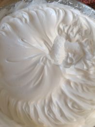 Крем получился отличный! Воздушный, белоснежный, с устойчивыми пиками — таким и торт украшать можно! Я довольна…, а шарик не получился-таки… ну не это главное, согласитесь?)))