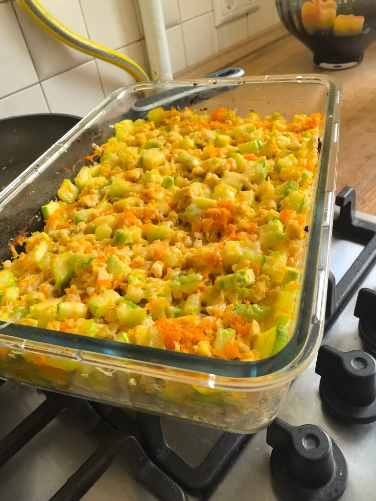 Запеканка получилась вкусной. Очень понравились в ней кабачки: они не были приготовлены «в кашу» и не были твёрдыми. Даже то, что она не цельная, а разваливается, вообще не портит картину. Спасибо за рецепт:)