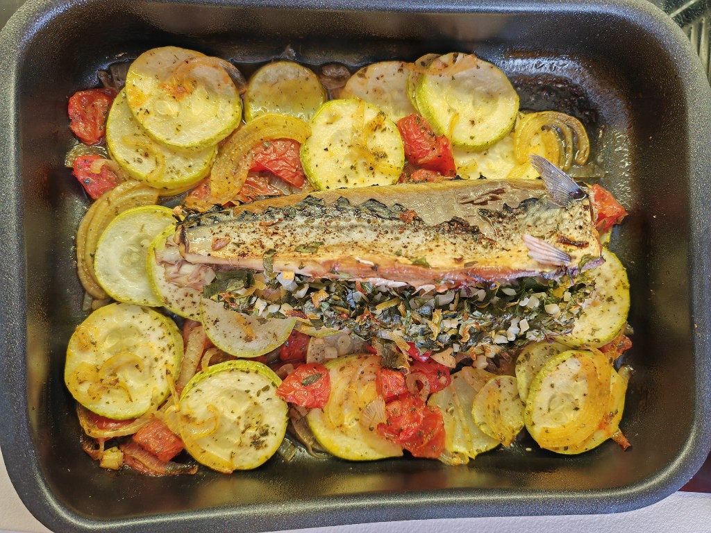 Выложить овощи в форму для запекания (я использовала форму размером 20×30 см).