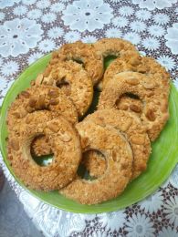 Для того, чтобы кольца было удобнее посыпать орехами, можно заготовки положить в морозилку на 10–15 минут (можно сложить их одно на одно, прокладывая пленкой, чтобы не слиплись).