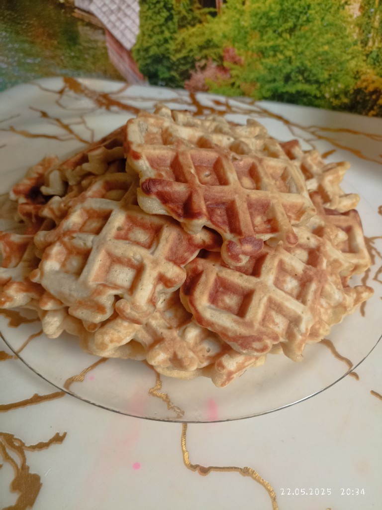 Из указанного количества ингредиентов получается 8–12 вафель 10×10 см.