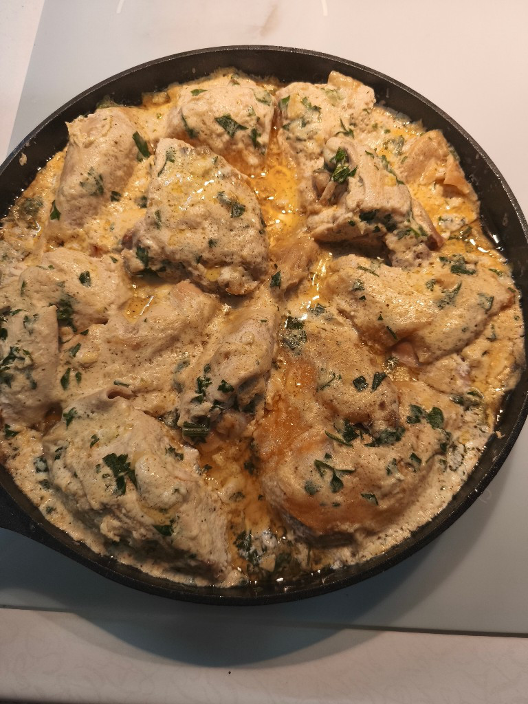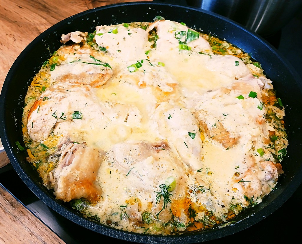 Благодаря обжариванию курочка остается сочная, нежная. А в сочетании с бархатистым, ароматным соусом это просто песня!