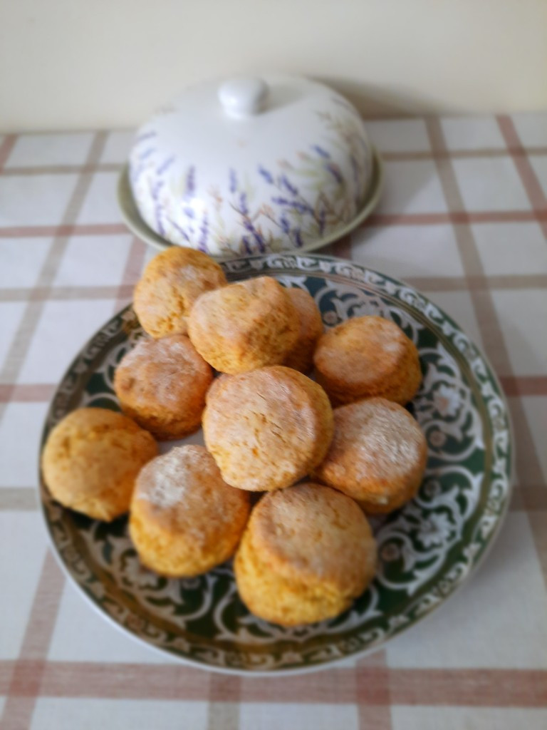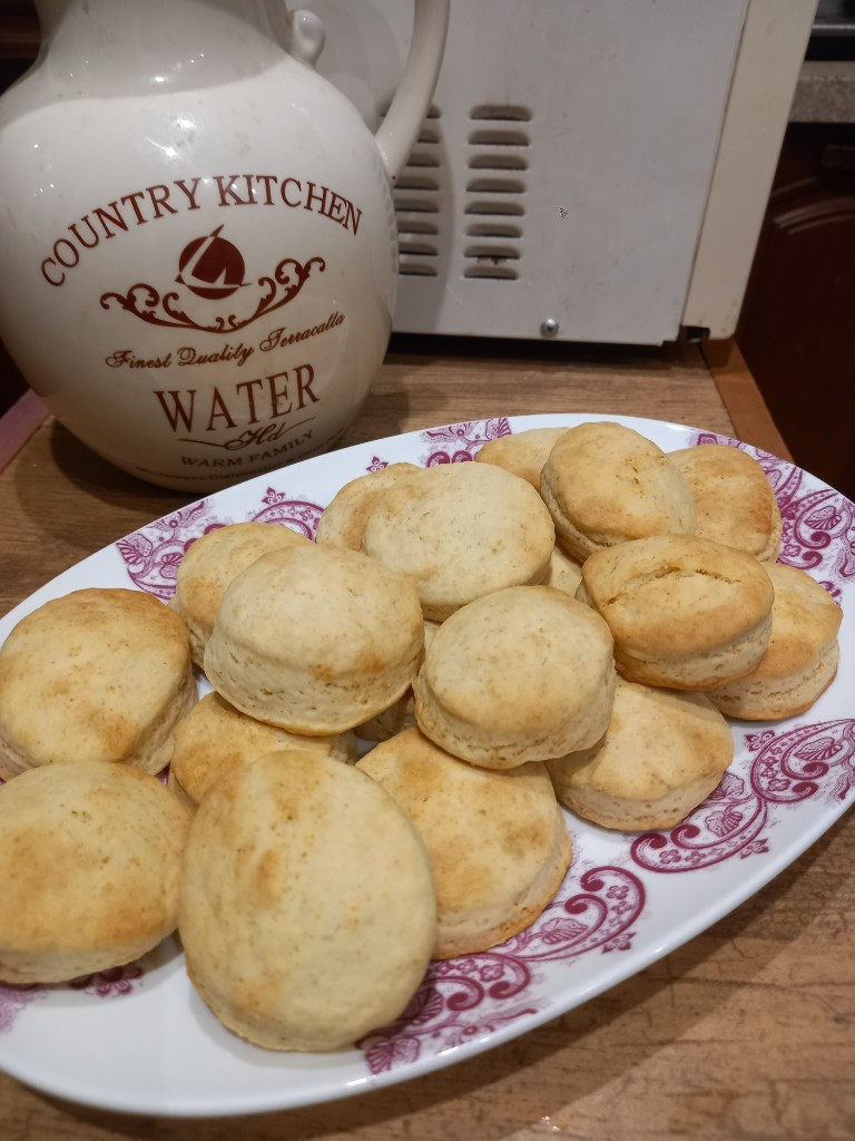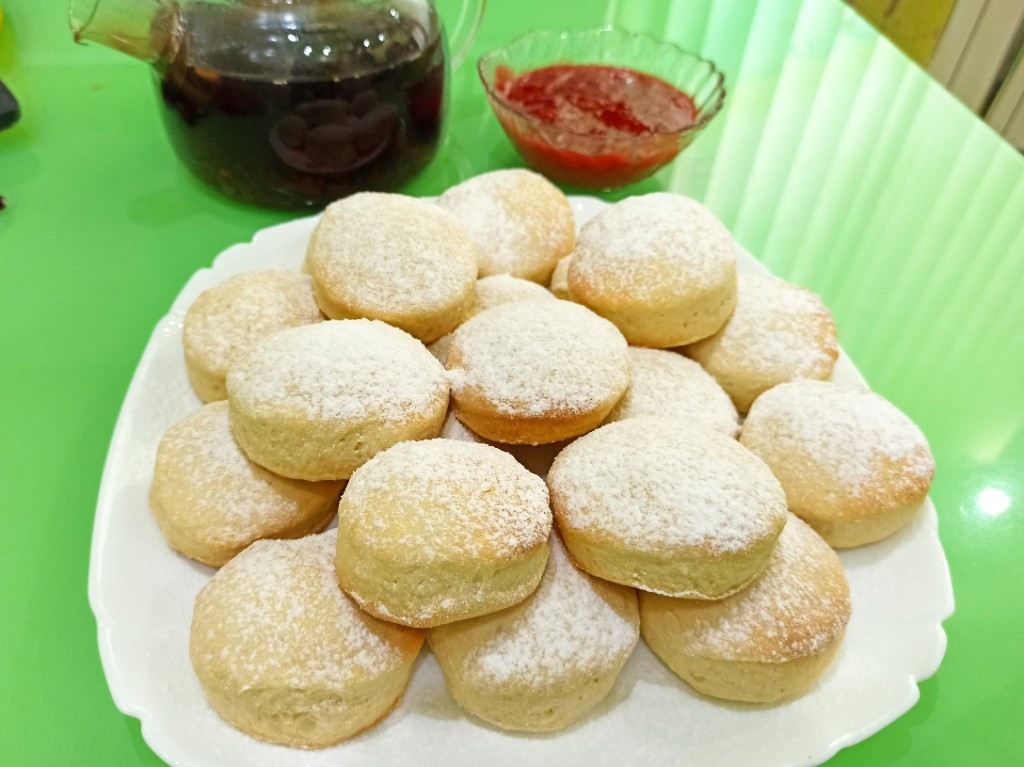 Подают их с маслом, джемом, взбитыми сливками. Для этого их разламывают пополам и выкладывают начинку.