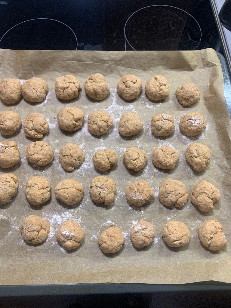 Из теста сформировать небольшие шарики (у меня по 20 г).