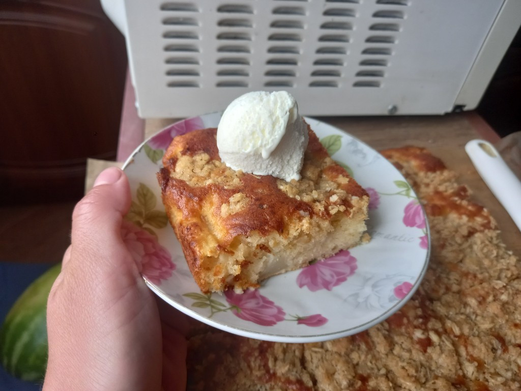 Очень вкусный пирог. Штрейзель придает изюминку, корочка получается хрустящая.
