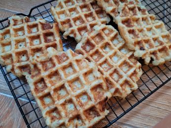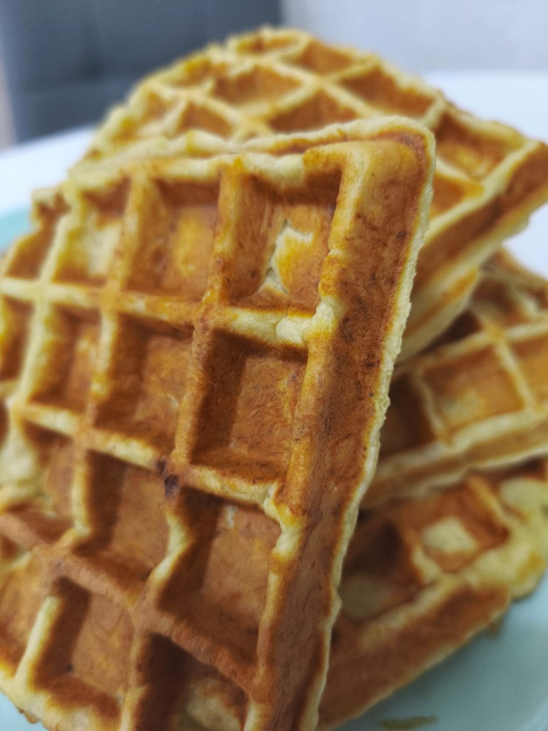 Из указанного количества ингредиентов получается 7–8 вафель 10×10 см.