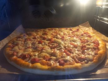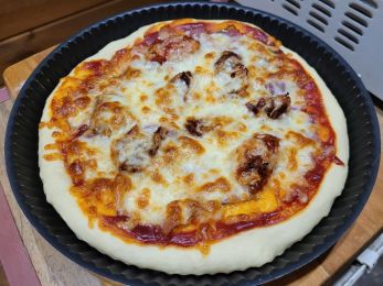 Из указанного количества ингредиентов получается две пиццы диаметром 30 см.