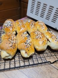 Получилось очень вкусно! Мне правда не хватило соли, может сыр пресноватый был. Брала сулугуни и адыгейский. Но они же тоже разной фирмы разнятся по вкусу. В следующий раз добавлю еще брынзу. Смазывала желтком со сметаной. Благодарю за рецепт!