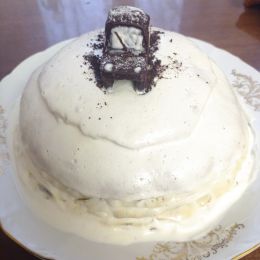 Спасибо за рецепт. Очень получился вкусный тортик. Легкий, не приторно сладкий. Декором занимался сын. Готовили для папы на День отца.