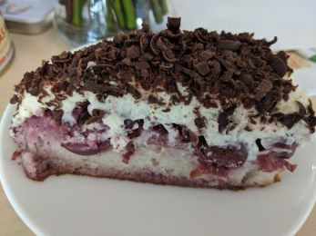 Шикарный рецепт! Мой любимый торт. На все праздники его делаю — всегда улетает. Сначала делала всё по рецепту — сверху шоколад и все. Потом стала ещё добавлять слой свежих ягод перед подачей. Сейчас ещё стала ягоды заливать желе, чтобы не разбегались. Но даже базовый вариант дико вкусный. Обычно кладу чуть на 40–60% меньше сахара в сливки, тк не люблю много сладости — получется отлично.