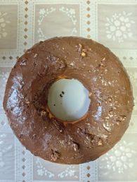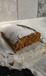 Очень вкусный кекс получился. Сверху я посыпала сахарной пудрой. Сверху вкусная тонкая корочка, кекс упругий, не сухой, не приторный(кому хочется сладкий — добавляйте больше сахара,но на мой вкус сладость идеальная), орехи раскрываются. Очень очень просто все замешать. Ингредиенты доступные.