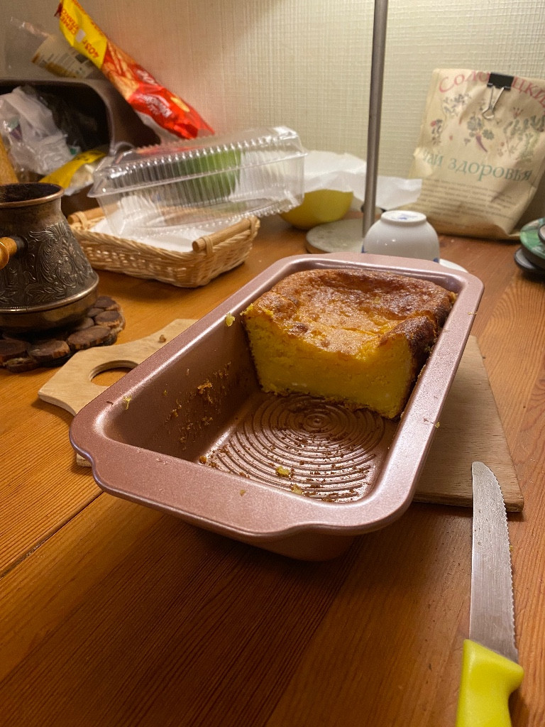 Кекс получился вкусный, за раз почти все съели! Зная особенности своей духовки выпекала 35–40 мин. Тыква была свежая, сока не было от неё. Творог пластовый брала, по мне ни мокрым, ни сухим не назовешь (приятная однородная консистенция). Из духовки достала кекс с приятной буханочной горочкой, а потом тоже осел. Ну и ладно) уже остывший кекс поливала сиропов в несколько этапов. Не успел он все впитать — его умяли. Сиропа ушло ⅔. Боялась, что будет приторно, но нет, в самый раз! Даже не успела украсить сахарной пудрой, а может оно и не надо было. Получилось вкусно, сочно и очень ароматно! Брат тыкву вообще не воспринимает, бегал за добавкой, не дождавшись пропитки сиропом! Благодарю за рецепт!