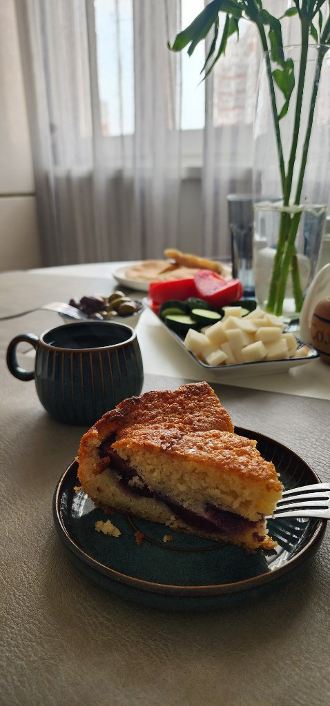 Спасибо за рецепт, получается очень вкусно! Готовила уже 3 раза, но последние 2 раза сливы «тонут», их не видно, они в тесте(