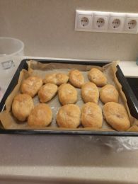 Первый раз смутило жидковатое липкое тесто, добавила муки и время на выпекание, печеньки получились объёмные. Сейчас оставила рецепт как есть, зато обваливать буду в кокосовой стружке, — вся в предвкушении.