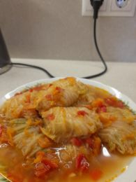 Сейчас приготовила голубуцы из пекинской капусты.Фарш готовила сама из свинины и говядины. Получились очень вкусные.