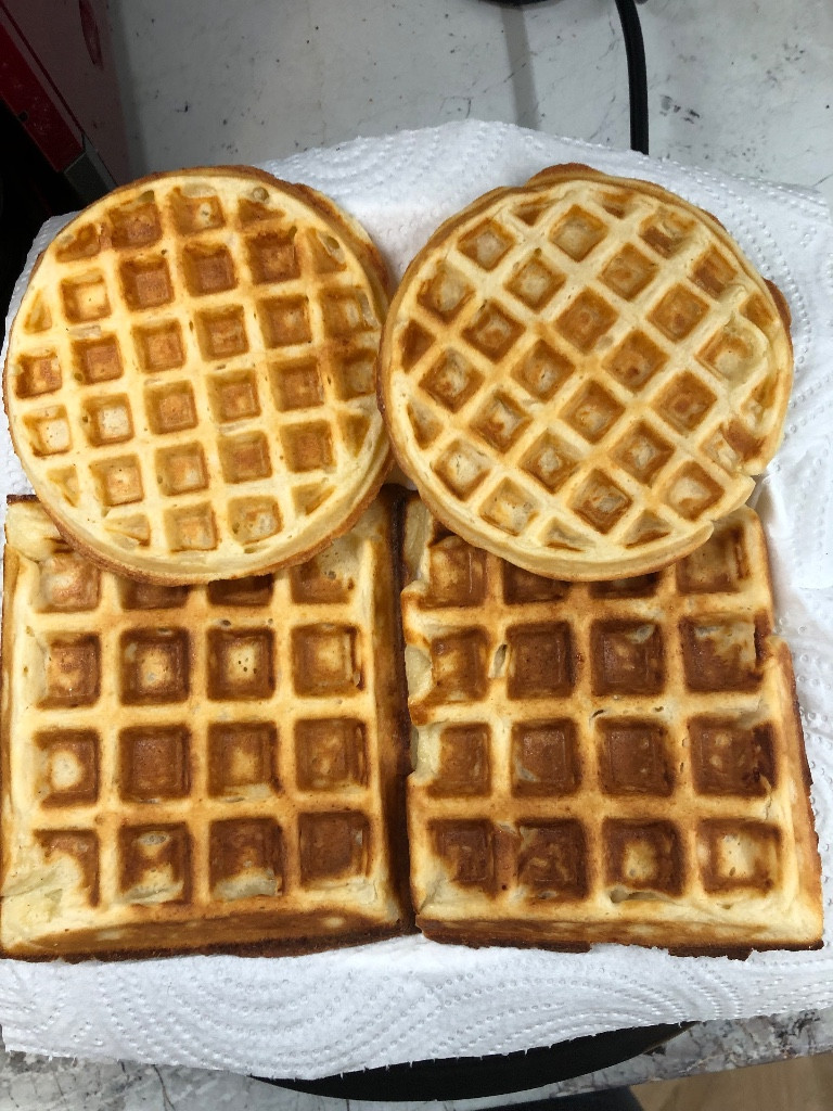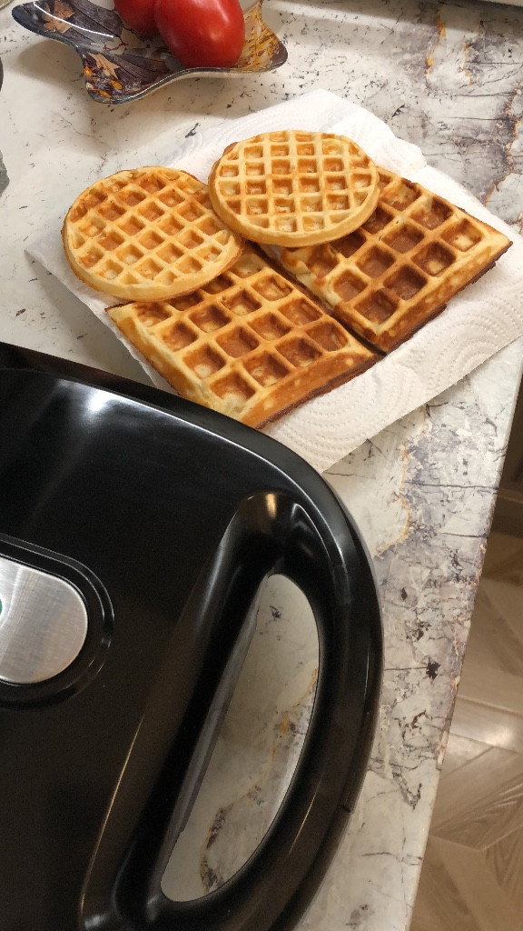 Впервые сделала эти вафли на грильнице. Получилось. Муж думал что будут по вкусу как драники, сказал, что картофельно-мучные пышки поучились. Но всё равно скушали со сметанкой. Вот думаю, если уменьшить колличество муки в 2 раз 🤔, наверное не получаться вафли… растекутся по грилю.. как блинчики.. Просто, суховаты как-то, слишком мучные.